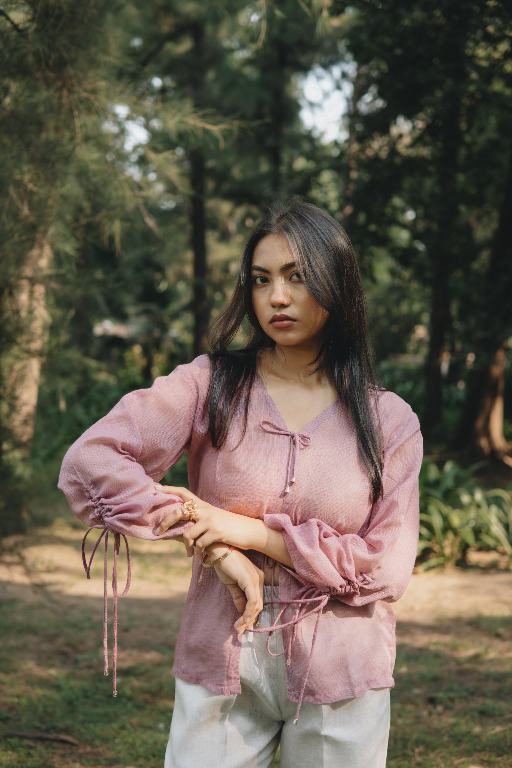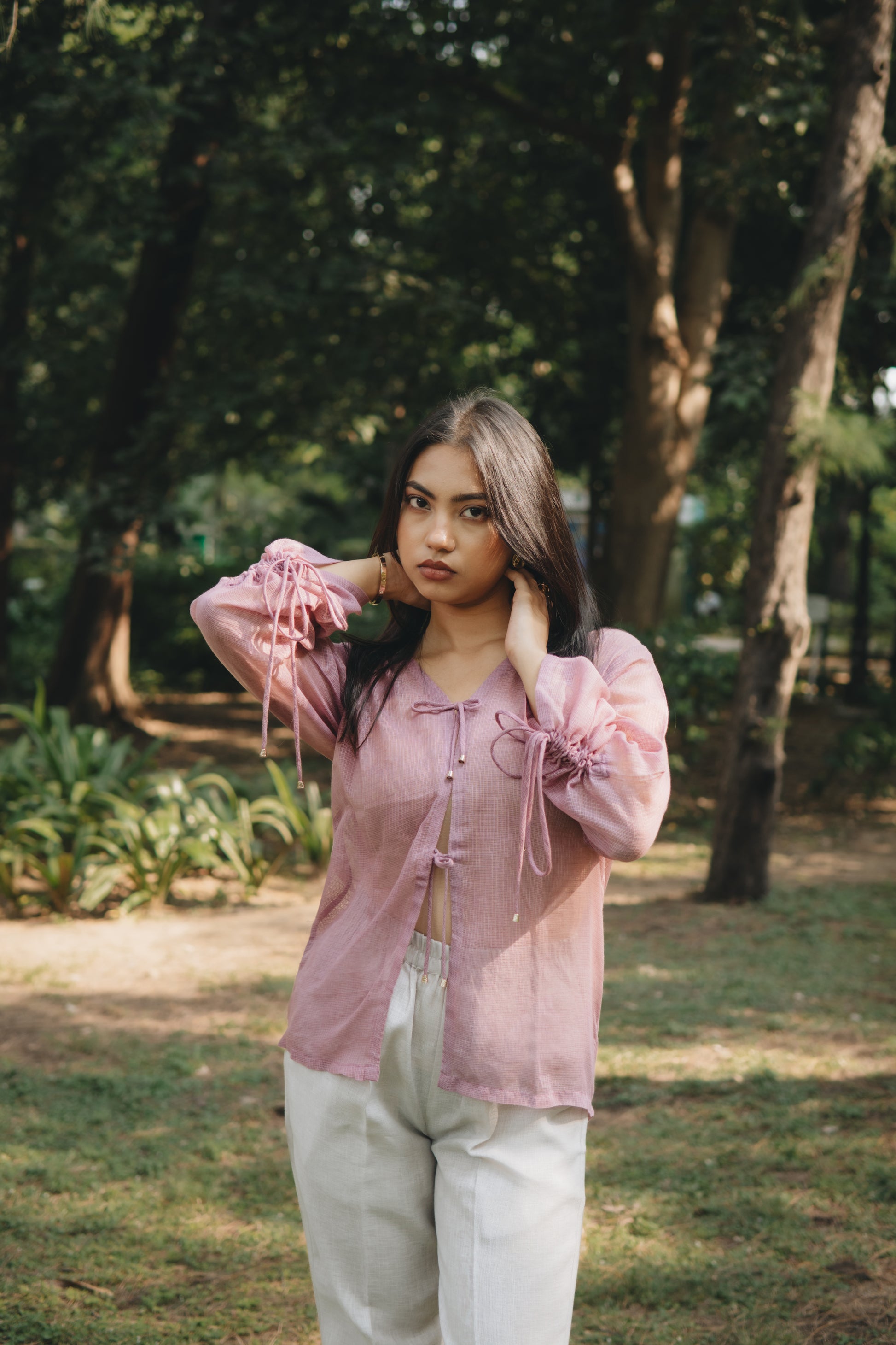 Light as air and tinted with grace, the Blush Tie-Up Top